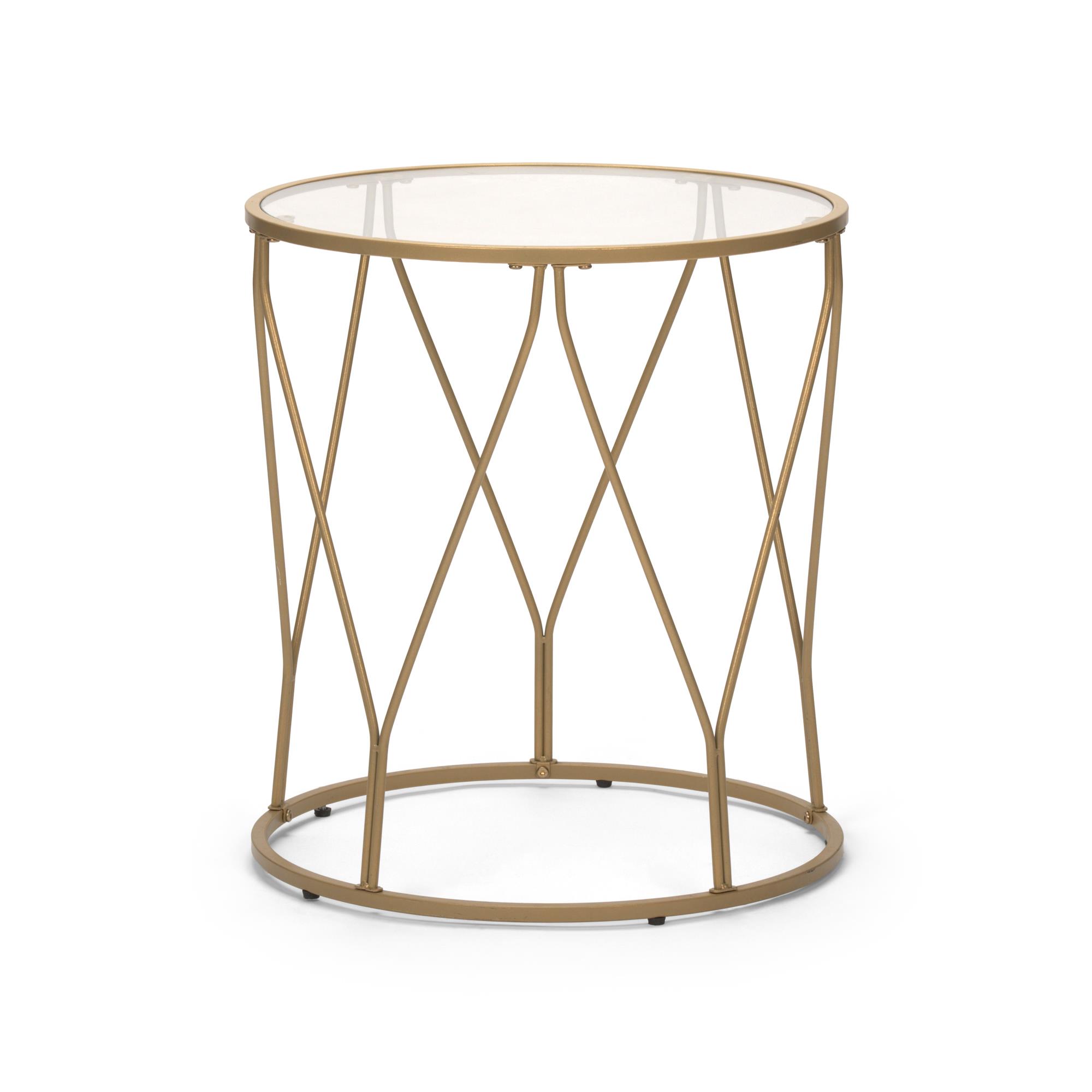 • Elevate your event space with the Luxe end table, where modern design meets functionality. This eye-catching piece features a round steel frame with a dazzling gold finish, adding a touch of glamour to any space. Its openwork design creates a sculptural effect, enhancing the table's contemporary appeal.